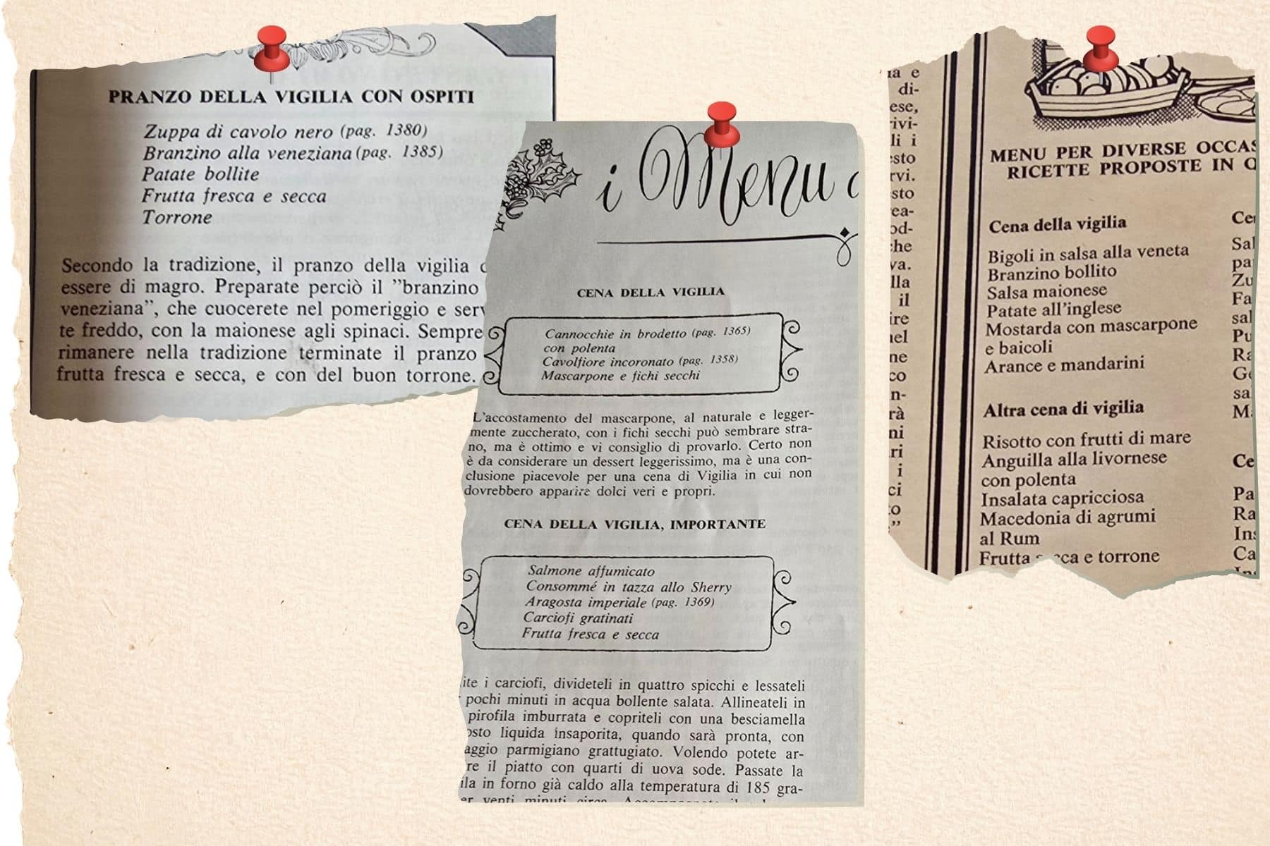 This all-seafood tradition is well-documented in the "bibles" of Italian cuisine. From Pellegrino Artusi to Ada Boni's Il Talismano della Felicità and the La Cucina Italiana collection from the 1970s, every authoritative text reports a Vigilia menu based strictly on seafood.